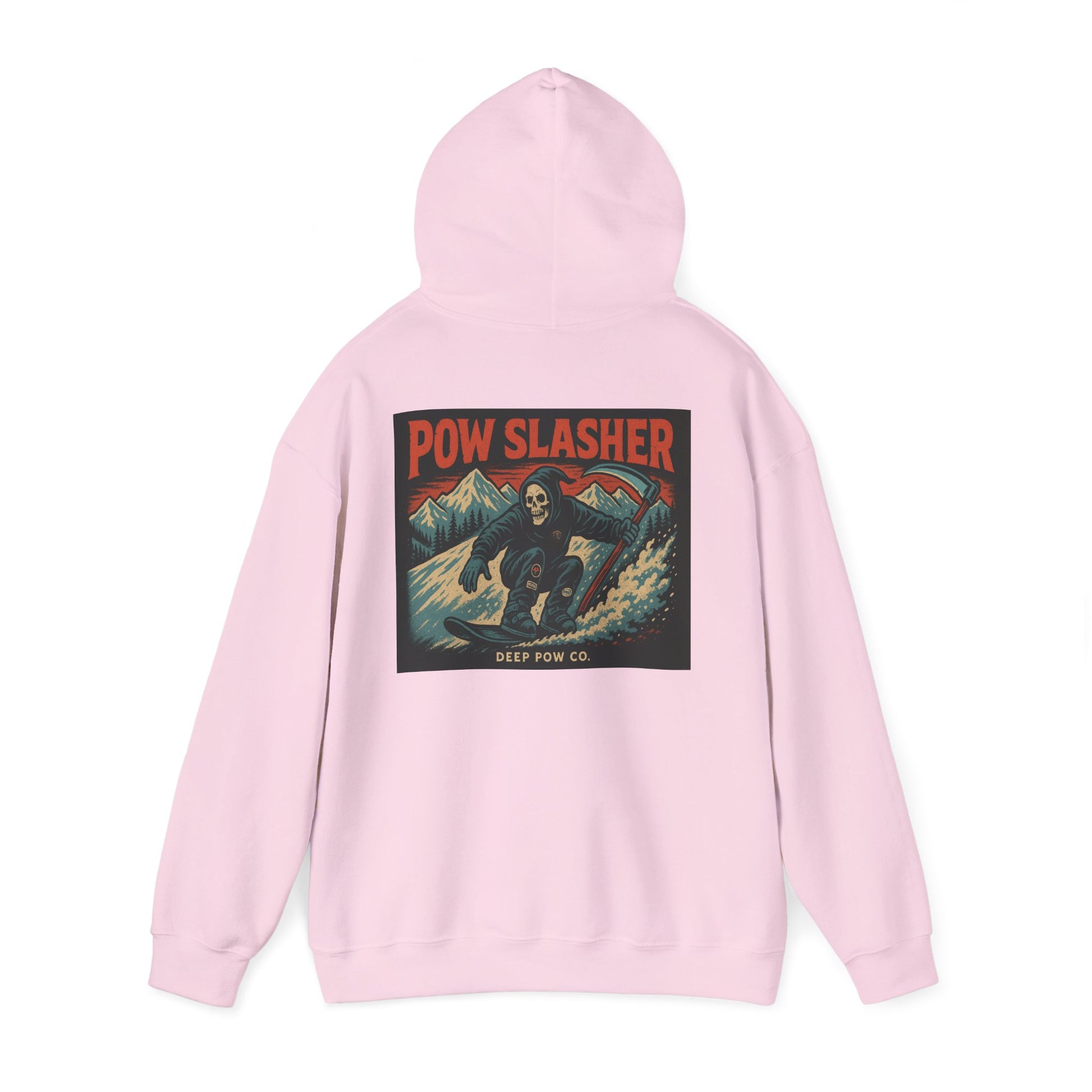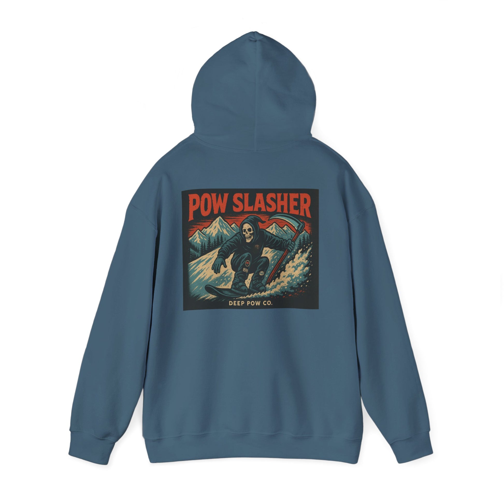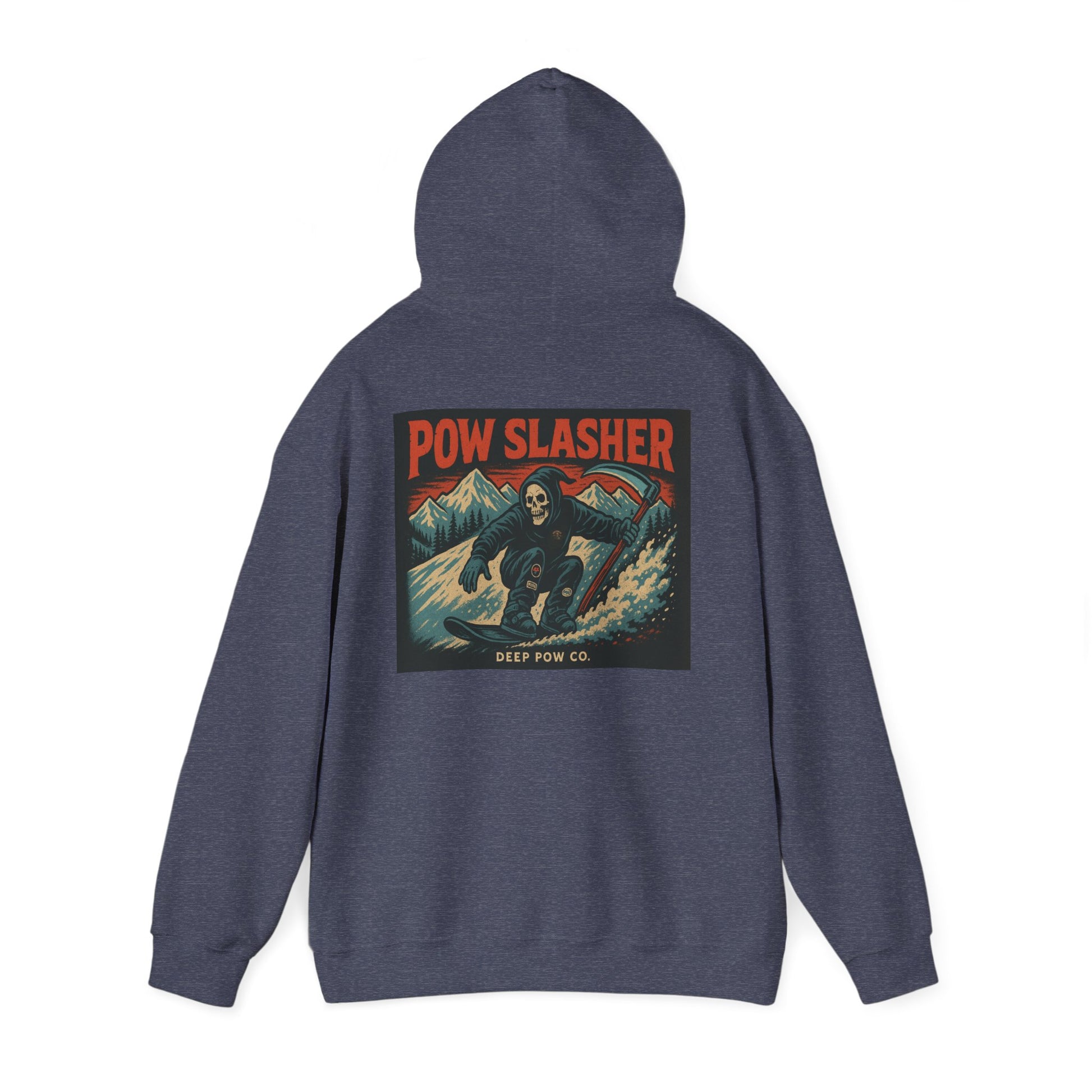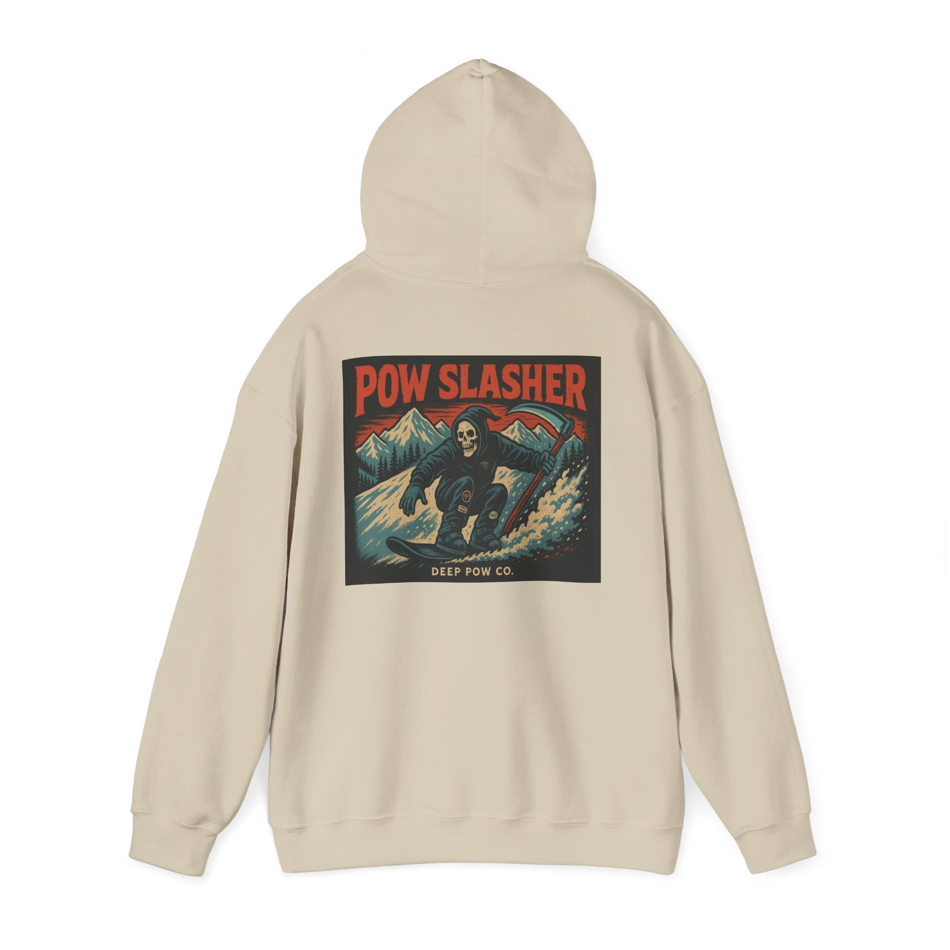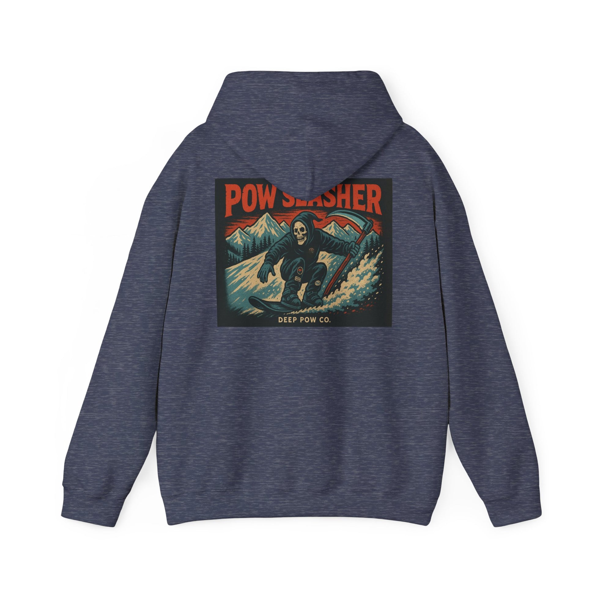 The “Pow Slasher” Hoodie by Deep Pow Co. unleashes the shadowy side of powder days — where the Grim Reaper hucks cliffs, slashes turns, and disappears into the white room like it’s his final run. Fueled by vintage 80s horror flick aesthetics and deep powder cult energy, this hoodie was made for mountain misfits, night riders, and soul shredders who know: the deeper the pow, the deadlier the turns.