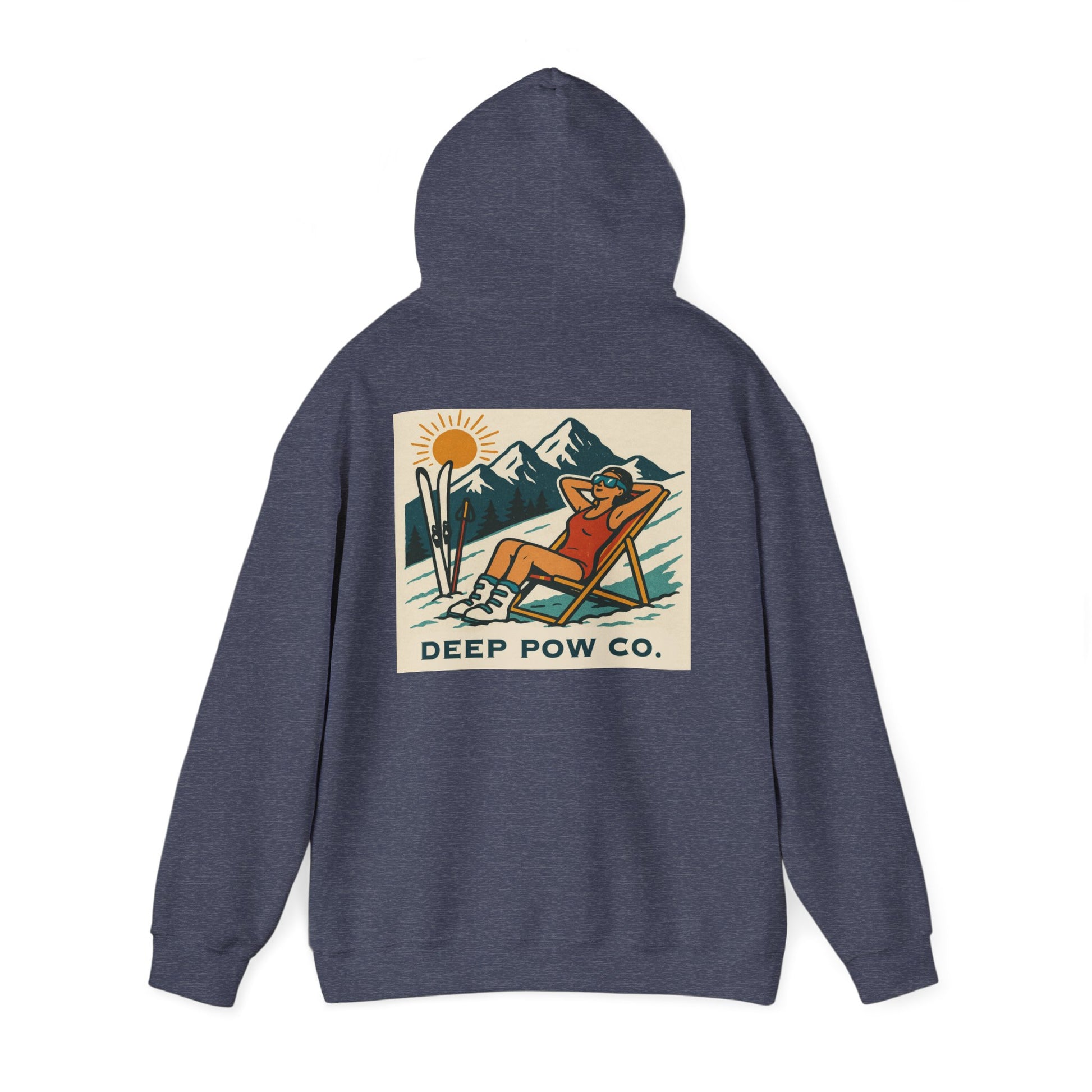 The Suns Out Buns Out hoodie by Deep Pow Co. brings warm-weather vibes and cheeky mountain style to the slopes. Built for spring sessions, goggle tans, and those legendary bluebird days when the layers come off but the fun doesn't stop. This vintage-inspired pullover is made for après ski lounging, parking lot tailgates, and lapping slushy park runs with your crew. Featuring retro colors, distressed textures, and a bold graphic that turns heads and starts conversations — this one's for the riders who know how to finish the season with style.